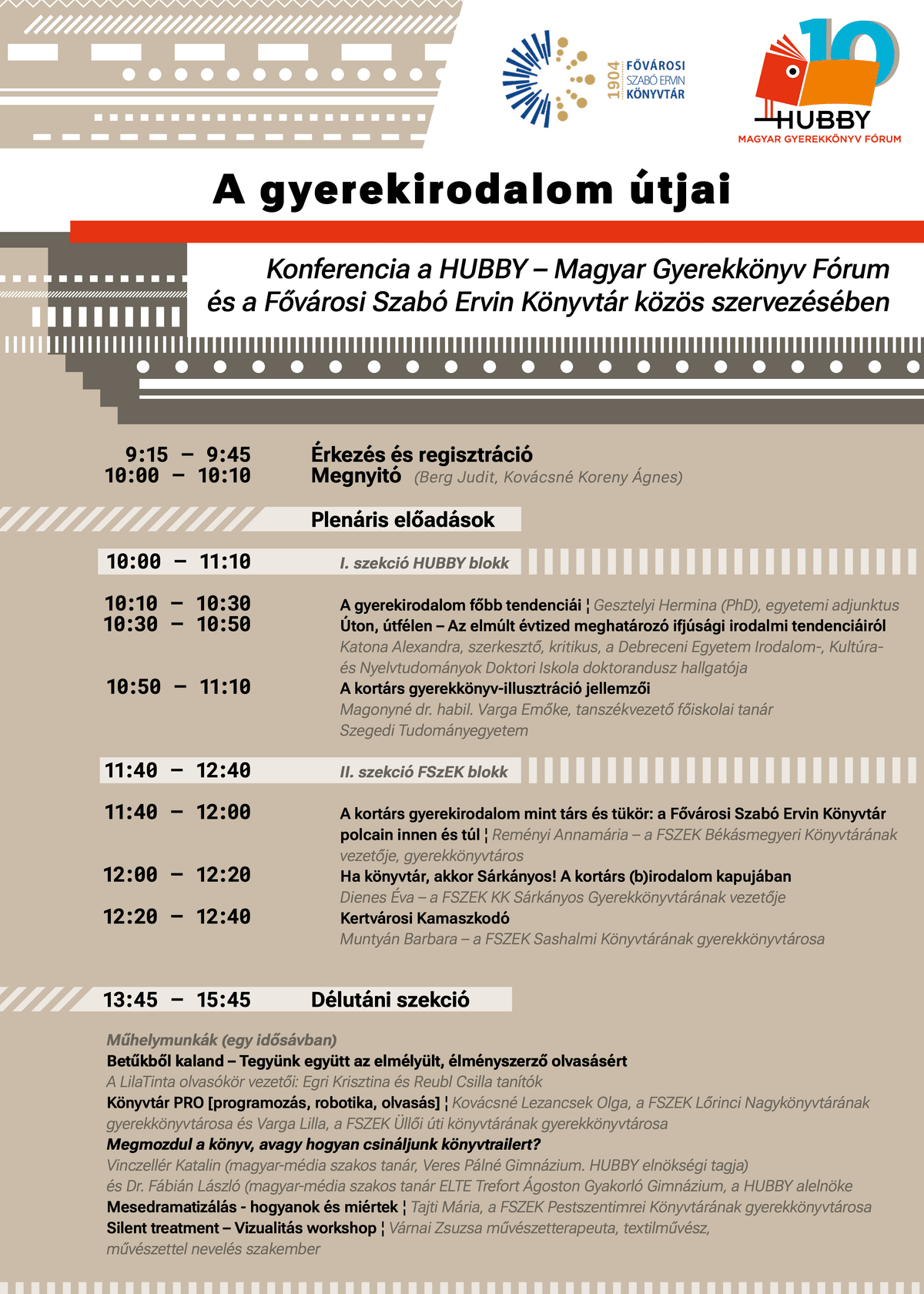 Regisztráció a HUBBY–Magyar Gyerekkönyv Fórum és a Fővárosi Szabó Ervin Könyvtár közös szervezésében megvalósuló A gyerekirodalom útjai című konferenciára.